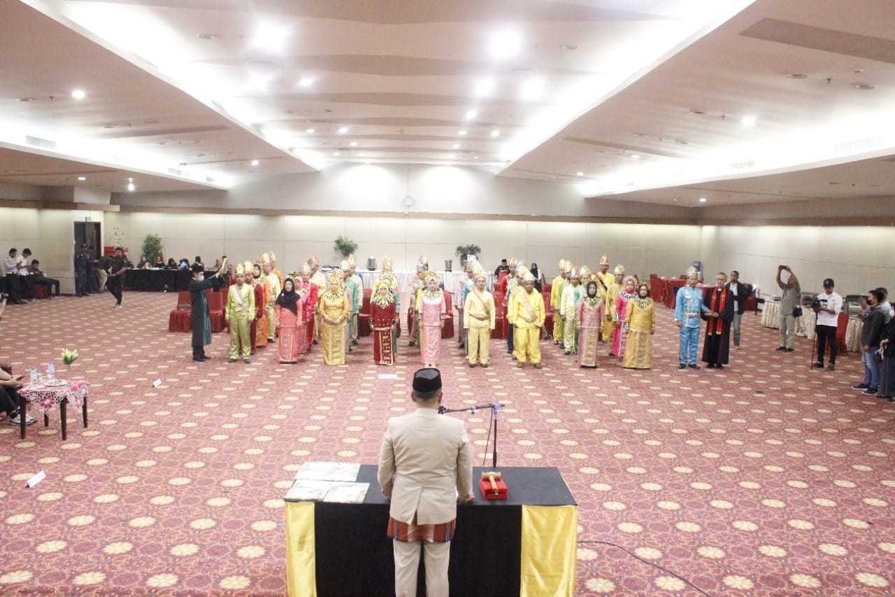 Ketua KPU kota Gorontalo Sukrin Saleh Taib melantik dan mengambil sumpah 45 anggota Panitia Pemilihan Kecamatan se Kota Gorontalo, di Ballroom Hotel Maqna Gorontalo, Rabu (04/01/2023).