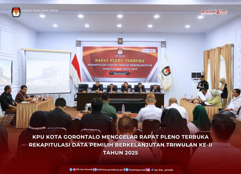KPU KOTA GORONTALO MENGGELAR RAPAT PLENO TERBUKA REKAPITULASI DATA PEMILIH BERKELANJUTAN TRIWULAN KE-II TAHUN 2025