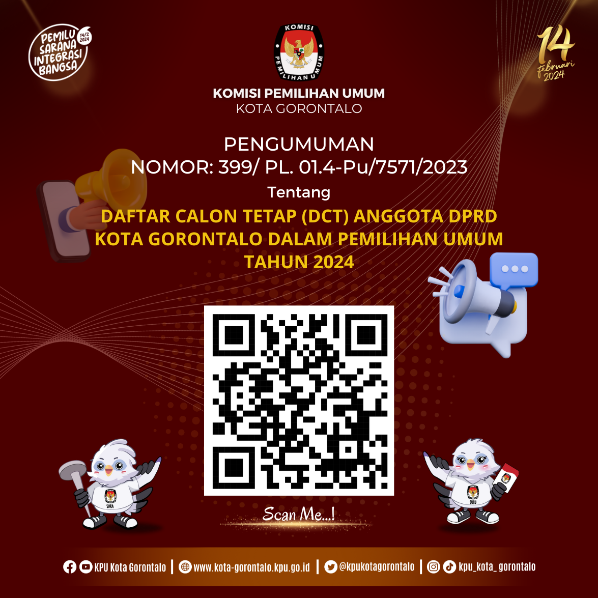 Download Pengumuman di: PENGUMUMAN DCT atau Salinan Keputusan KPU Kota Gorontalo