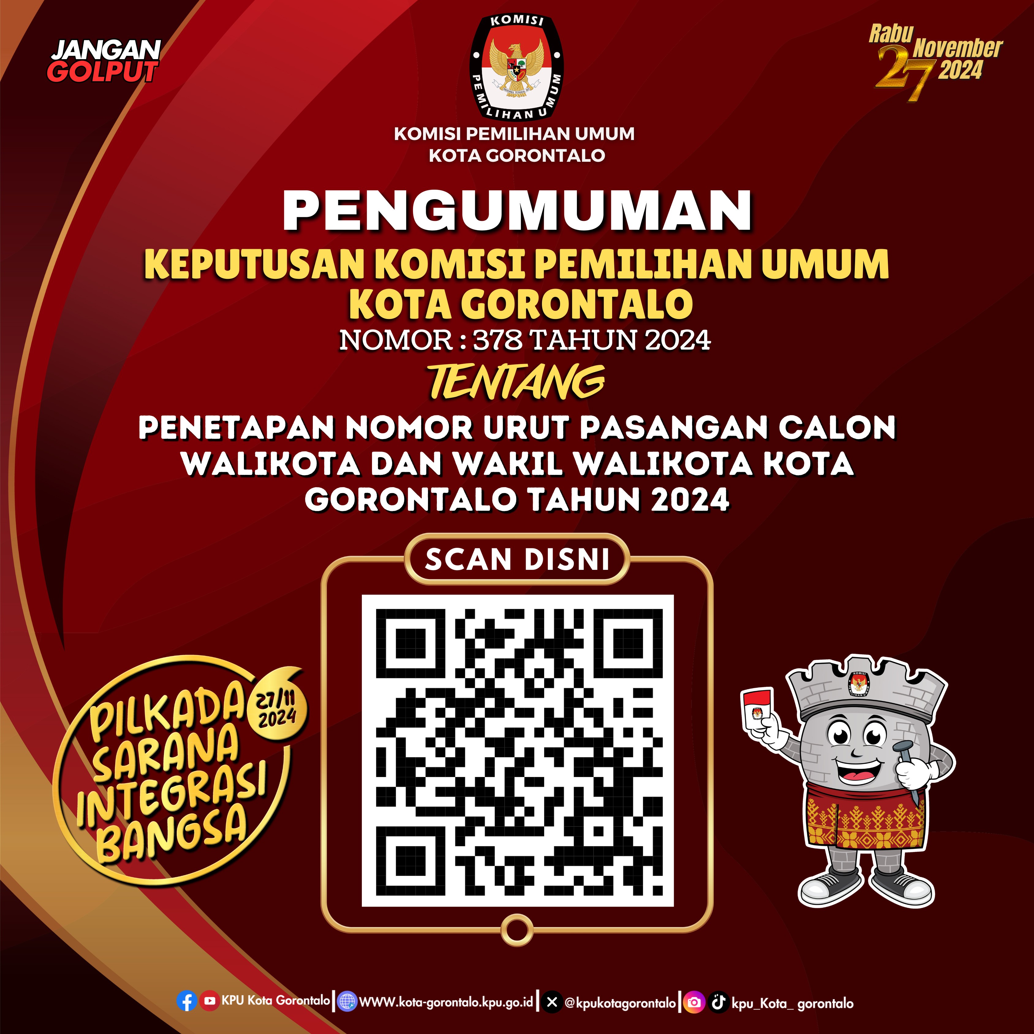 Penetapan Nomor Urut Pasangan Calon Walikota dan Wakil Walikota Gorontalo Tahun 2024