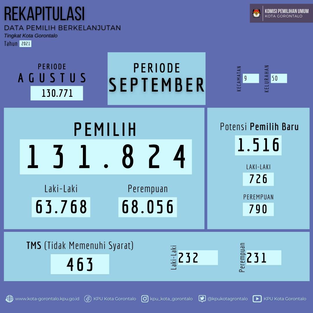 #temanpemilih, kami (KPU Kota Gorontalo) telah memutakhirkan data pemilih periode Bulan September 2021.