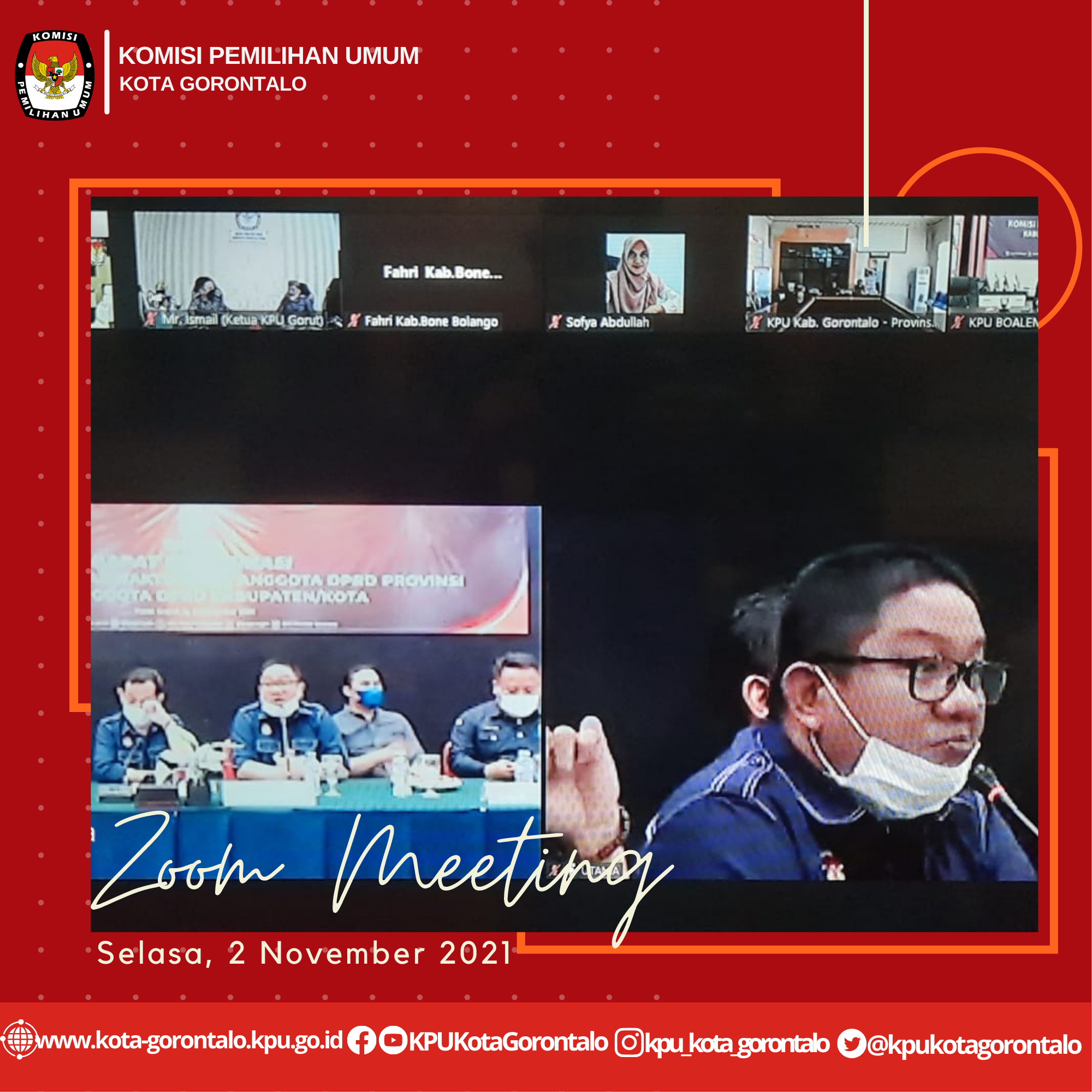 KPU Kota Gorontalo Selasa (2/11/2021) mengikuti Rapat Koordinasi Penggantian Antarwaktu (PAW) Anggota DPRD Provinsi dan DPRD Kabupaten/Kota yang digelar oleh KPU Provinsi Gorontalo secara daring dan luring.