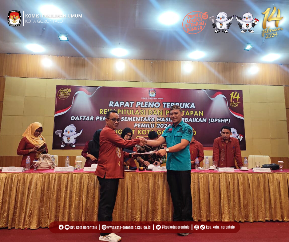 Melalui Rapat Pleno terbuka Rekapitulasi Daftar Pemilih sementara Hasil Perbaikan tingkat Kota Gorontalo, Komisi Pemilihan Umum (KPU) kota Gorontalo menetapkan sebanyak 146.445 Daftar Pemilih Sementara Hasil Perbaikan pada Pemilihan Umum (Pemilu) 2024 , Jum'at (12/5/2023).