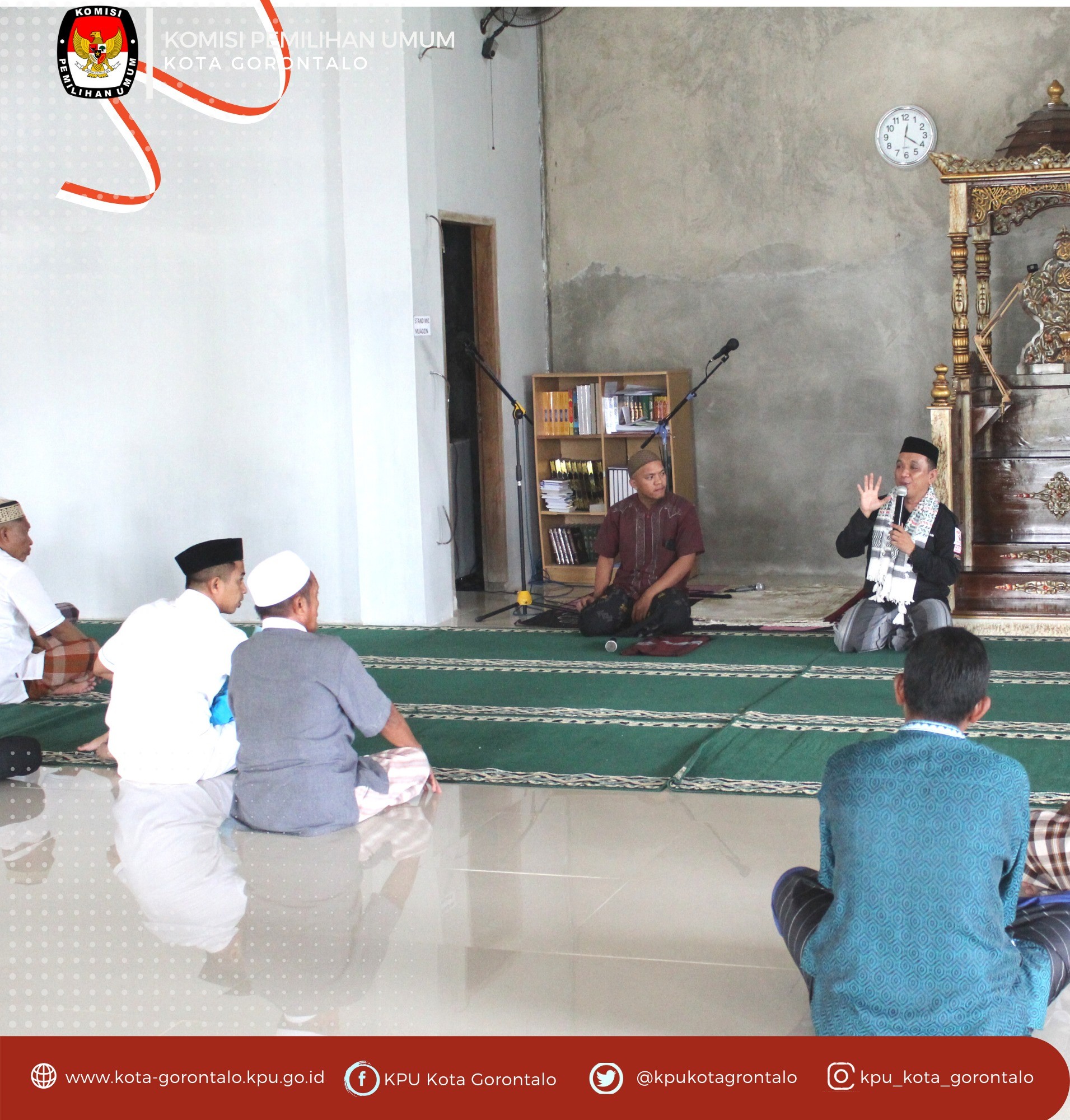 Usai sholat Jumat Sukrin menyampaikan sosialisasi terkait kepemiluan bersama para jamaah masjid Al Furqon materi sosialisasi terkait persoalan Pemutakhiran Data Pemilih Berkelanjutan (PDPB) yang menitik beratkan pada persoalan khusus untuk pembersihan data pemilih yang telah meninggal dunia. Problem data pemilih yang telah meninggal dunia adalah persoalan klasik, muncul setiap hajatan Pemilu dan Pilkada tidak sedikit pemilih yang sudah meninggal masih terdapat dalam Daftar Pemilih Tetap (DPT). Persoalan ini merupakan persoalan administratif, penduduk yang telah meninggal oleh Dinas Dukcapil baru bisa dihapus tatkala keluarganya telah mengurus akta kematian . Artinya, ketika pemilih dinyatakan meninggal maka tidak serta merta dihapus dari data kependudukan kecuali sudah keluar akta kematian. Dan untuk sedikit menurai persoalan ini KPU Kota Gorontalo mensosialisasikan melalui program Rabu Ceria memfasilitasi antar jemput warga yang akan mengurus Akte Kematian maupun Perekaman KTP El